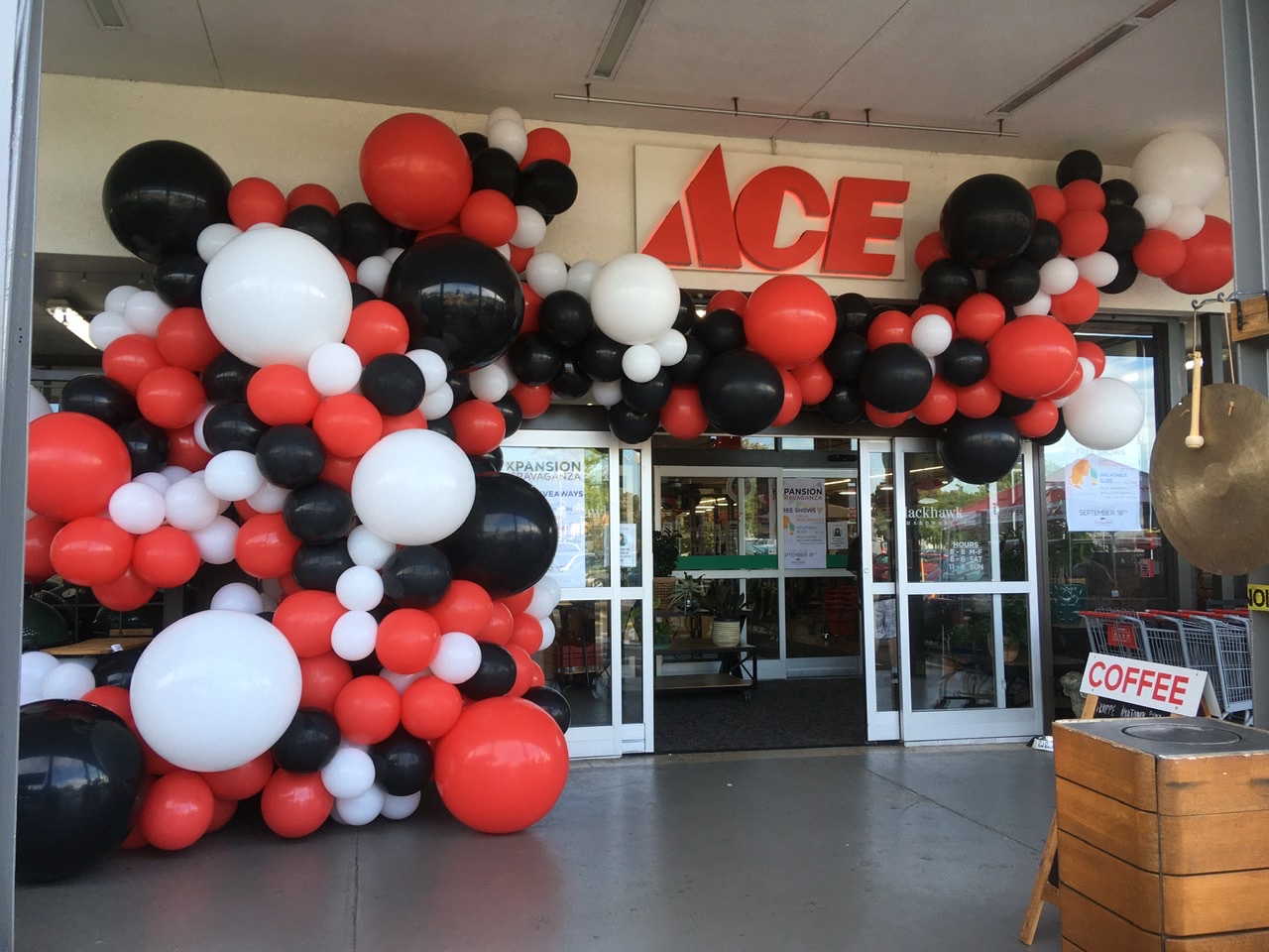 large organic balloon garland at Blackhawk hardware in charlotte