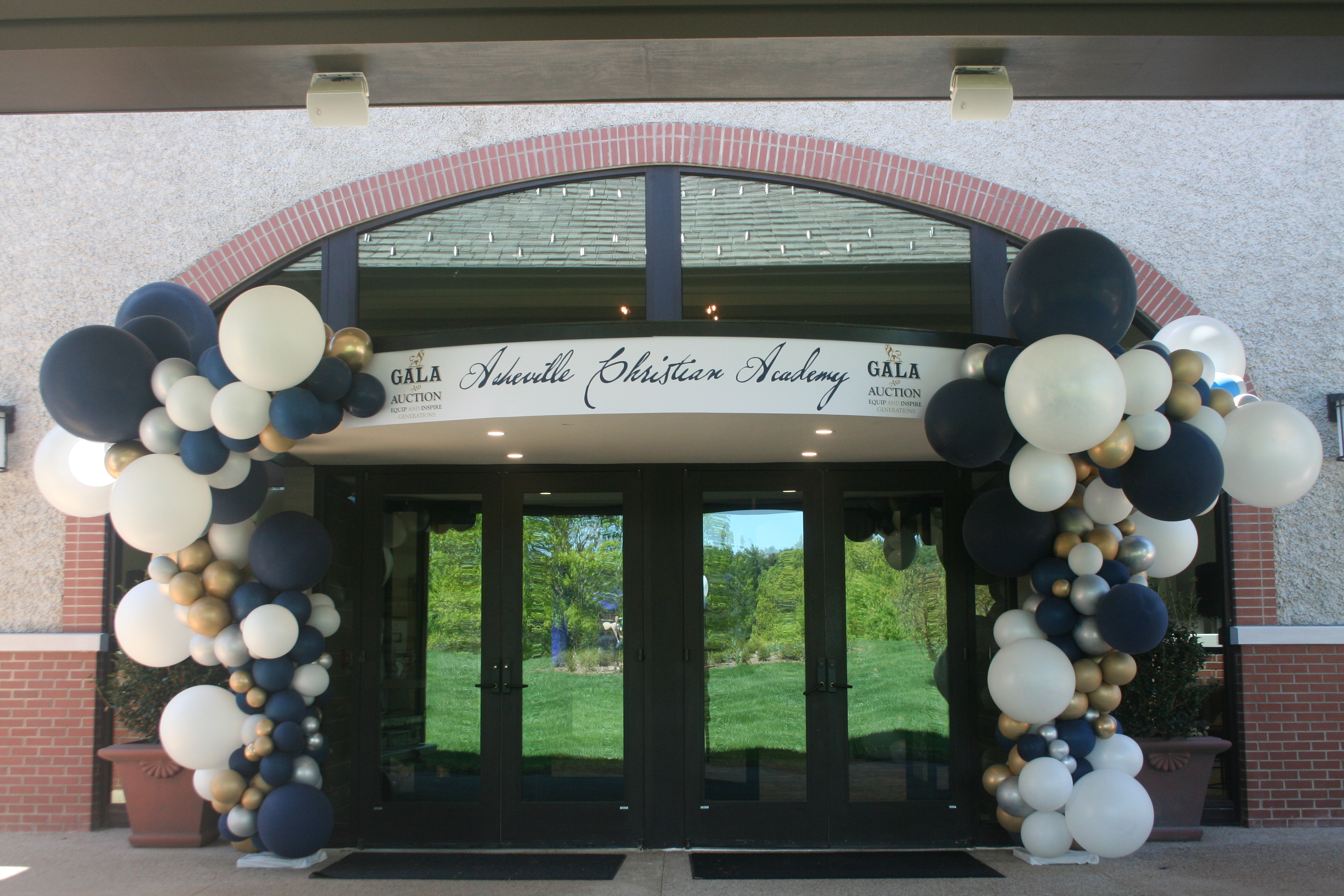 two exterior organic garlands at a gala in Asheville, nc